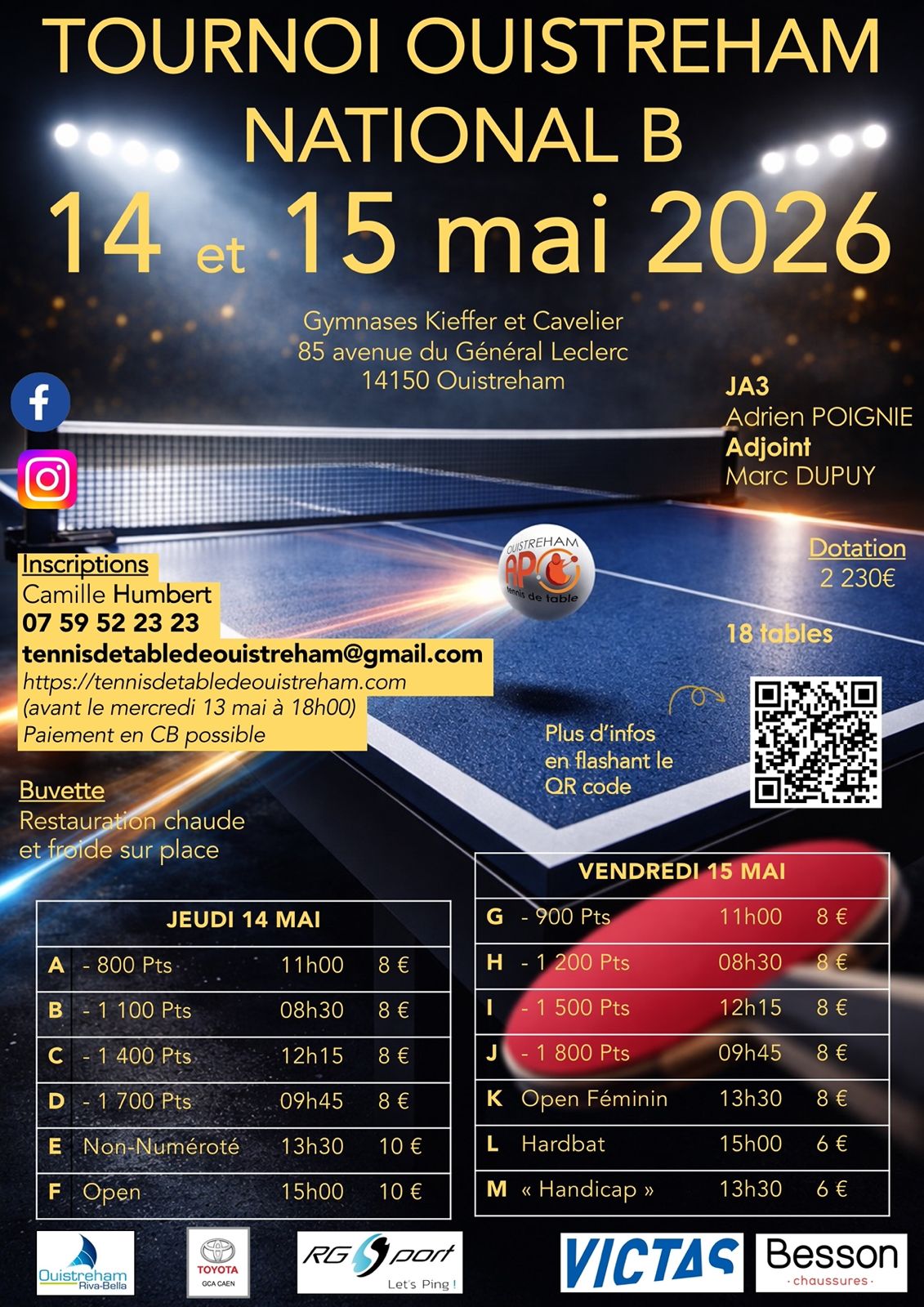 Le club de l'AP OUISTREHAM organise son tournoi National B le jeudi 14 et le vendredi 15 mai 2026.